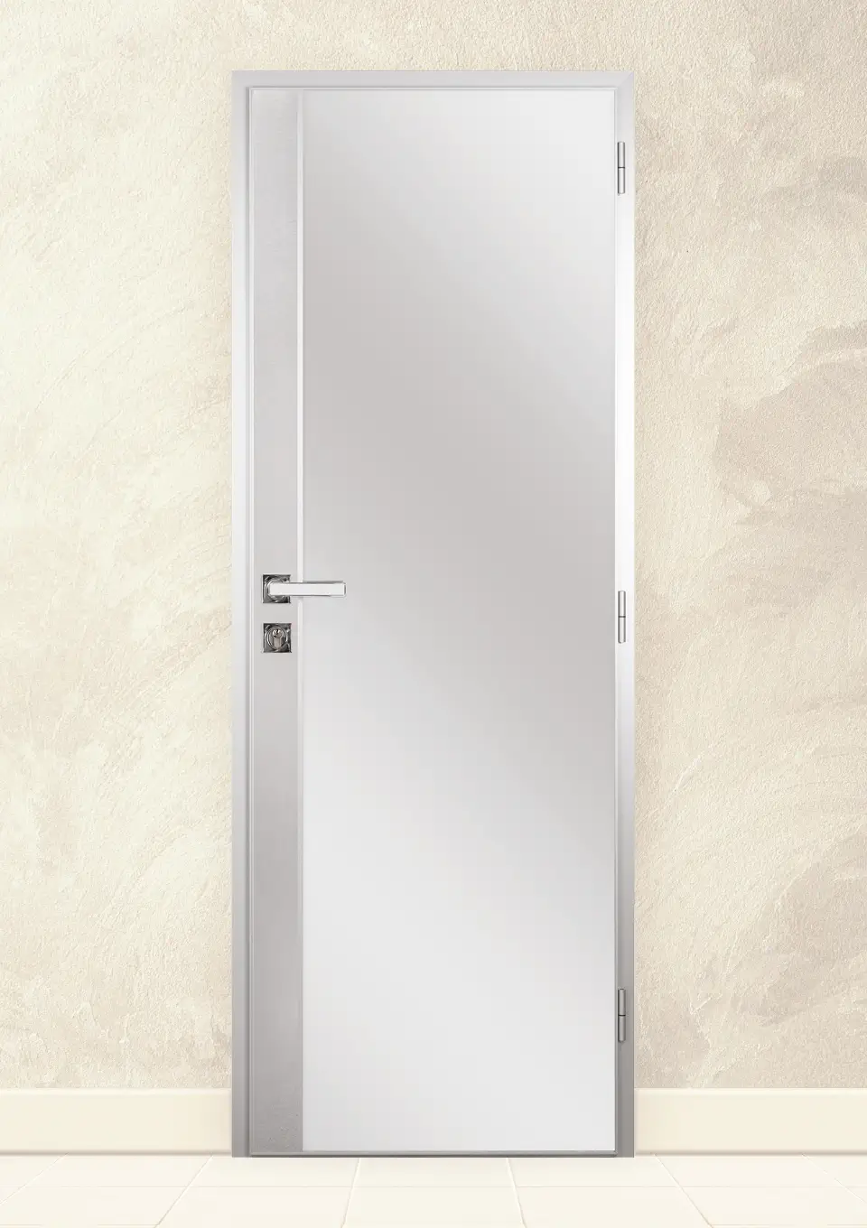 Нова серия алуминиеви врати за баня, чиято външна страна се предлага във всички цветове на Граде. От страната на мокрото помещение имат голямо огледало и малка вертикална част от страната на бравата в цвета на крилото. Има възможност тази част да бъде с алуминиева лайсна – което е препоръчително за помещения, в които вратата ще бъде подложена на обливане с вода.