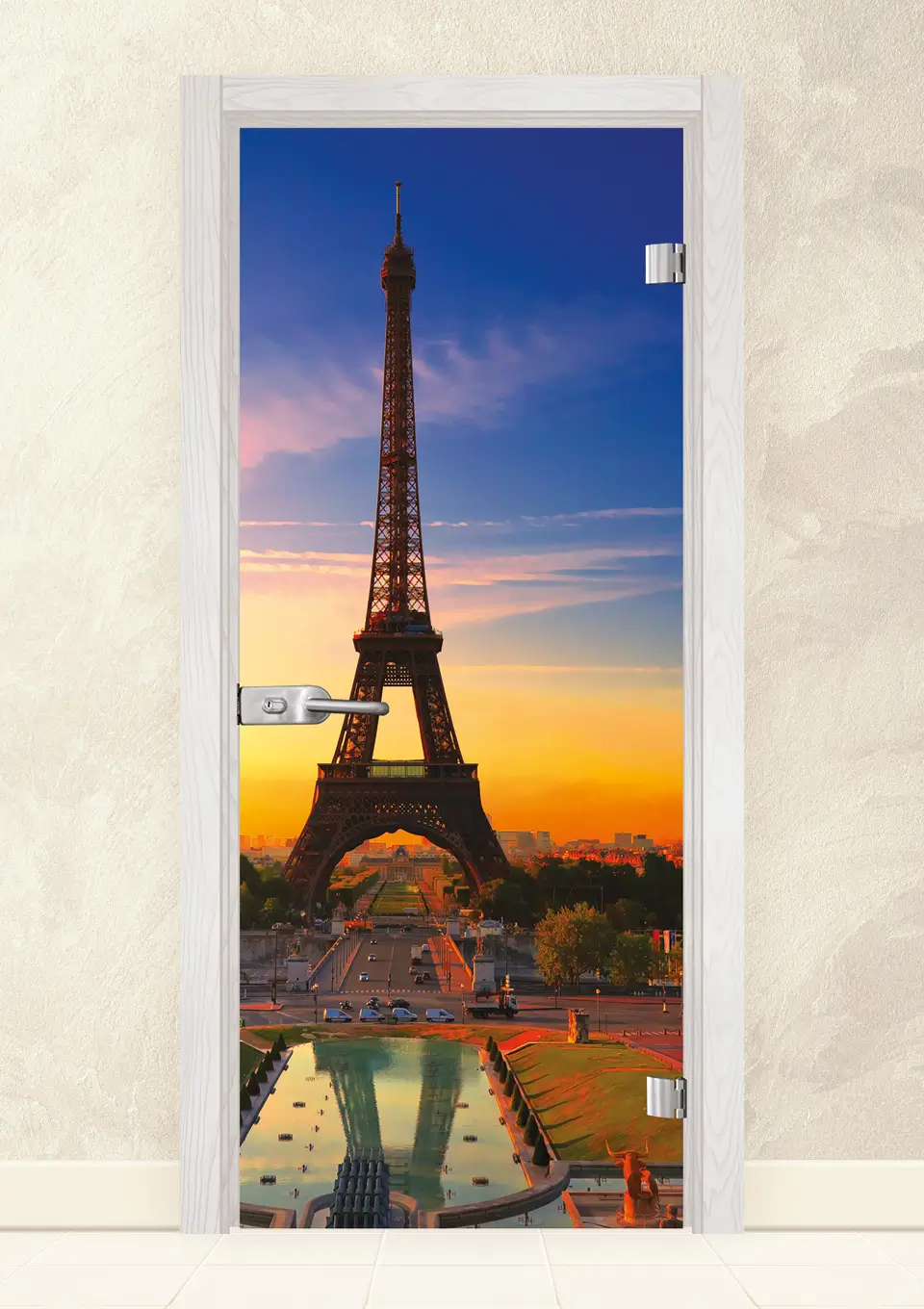 Стъклена врата, изработена от 8мм закалено стъкло с принт. Закаляването е процес, при който стъклото е подложено на специална обработка, осигуряваща му повишена здравина при удар и резки спадове на температурите. При счупване, то се пръска на малки парченца без остри ръбове. При серия Print се слепват две 4 мм стъкла, чрез специален термичен процес, като между тях се поставя фолио с принт. Принтът може да бъде едностранен или двустранен.